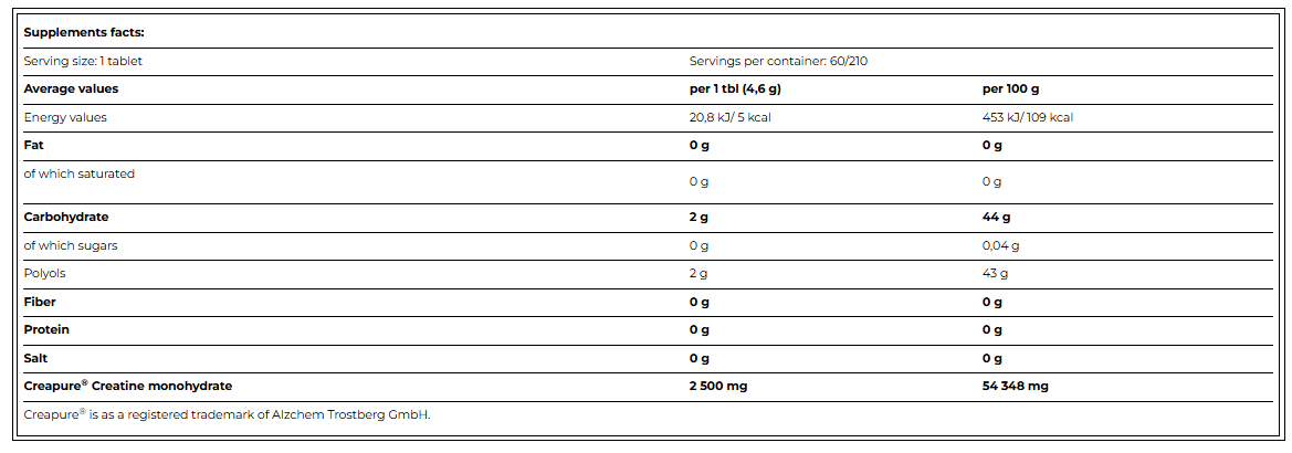 Amix™ Creatine 2500 mg Kautabletten – enthalten Creapure® Kreatinmonohydrat und wurden für die effektive Kreatin-Supplementierung im Rahmen der Ernährung von Sportlern und aktiven Menschen entwickelt. Die praktische Kautablettenform (zuckerfrei) ermöglicht die einfache Einnahme zu jeder Tageszeit. Kreatin steigert die körperliche Leistungsfähigkeit bei kurzzeitigen, hochintensiven Belastungen. Die positive Wirkung wird mit einer täglichen Einnahme von 3 g Kreatin erzielt.
